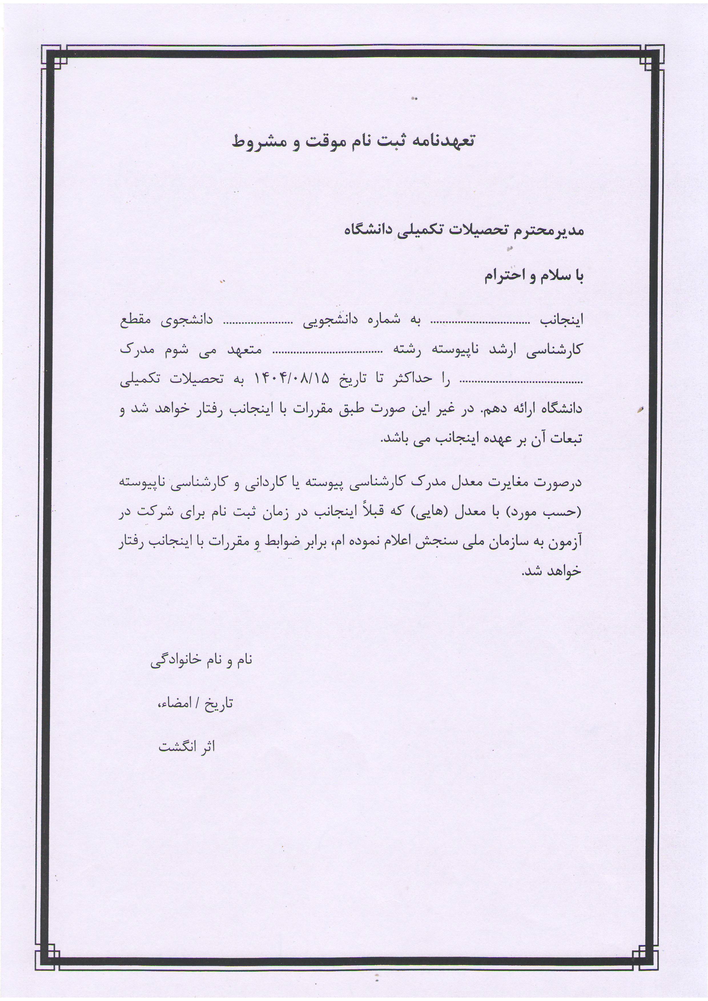 - فرم تعهد ثبت نام